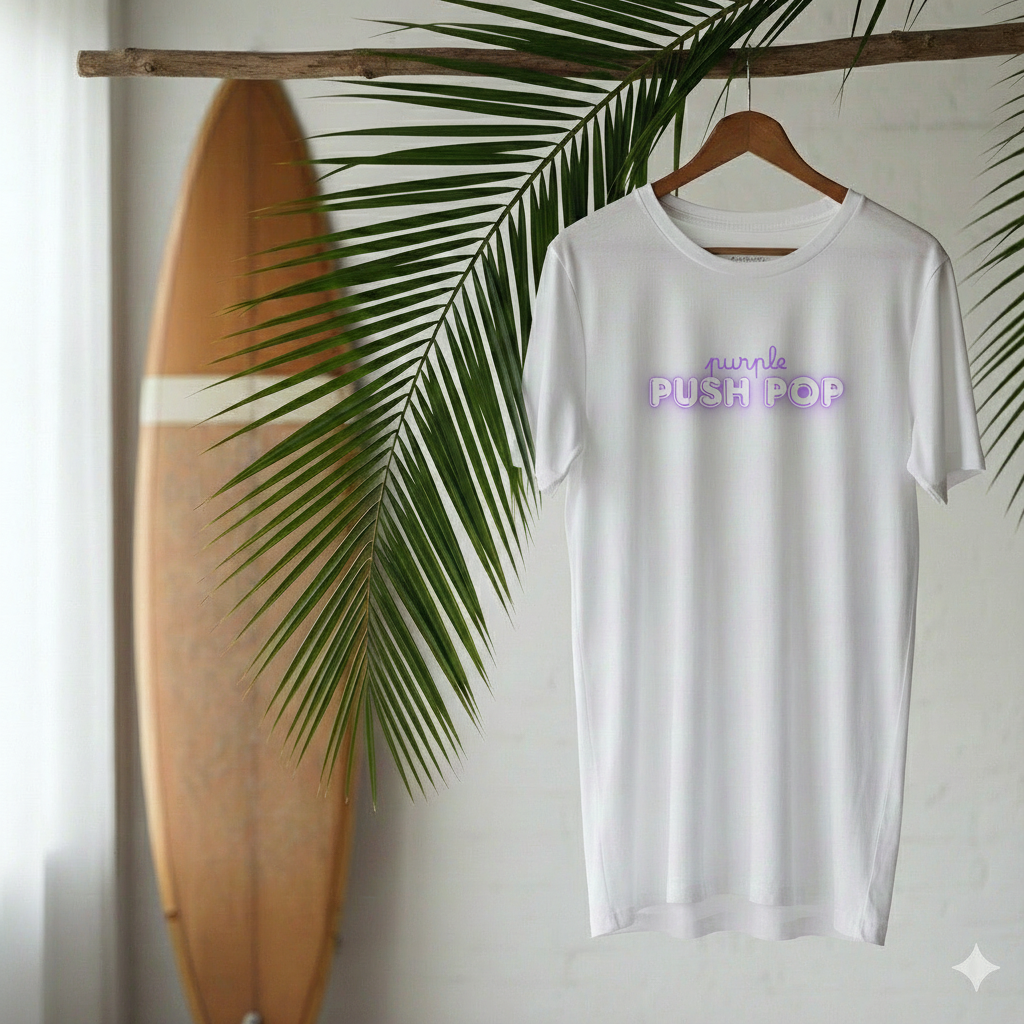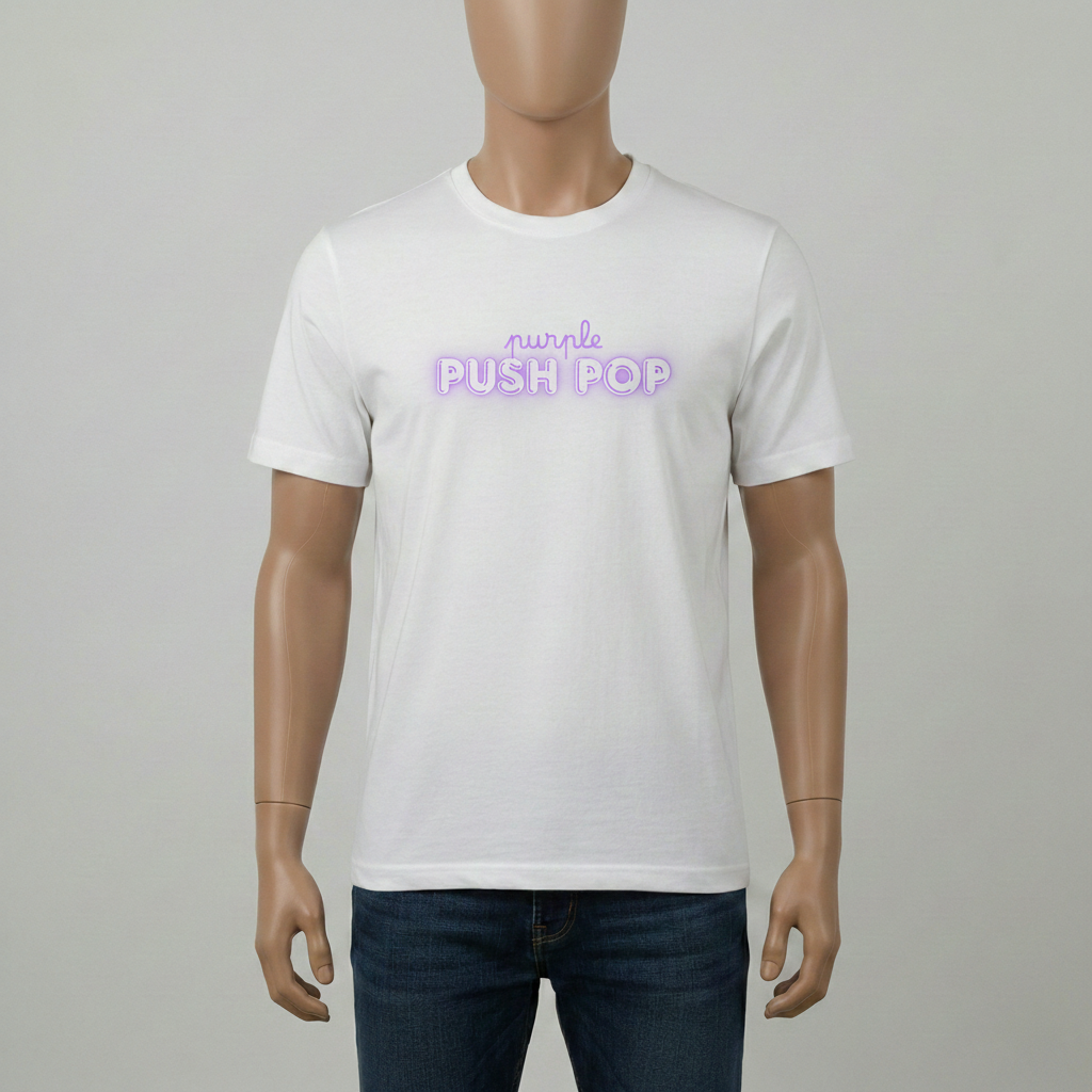 White T-shirt Purple Push Pop Sourced
